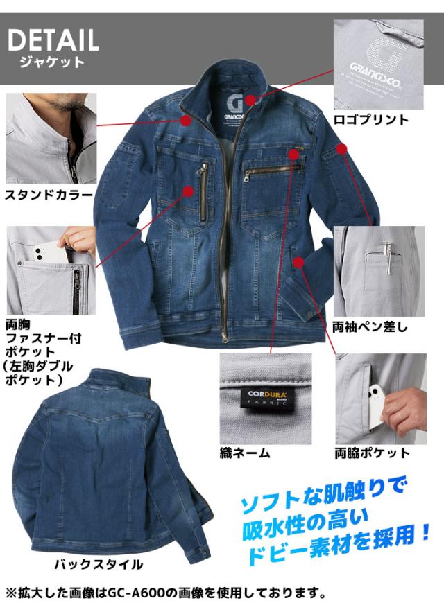 グランシスコ 作業服 デニム ジャケット GC-A600 8.75oz オールシーズン コーデュラ 長袖 作業着 作業服 タカヤ商事