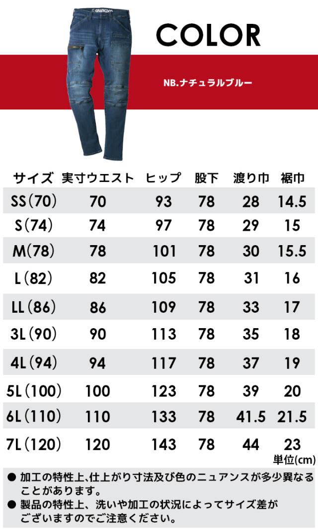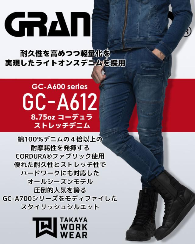 グランシスコ 作業服 デニム カーゴパンツ GC-A612 8.75oz オールシーズン コーデュラ ズボン 作業着 作業服 タカヤ商事