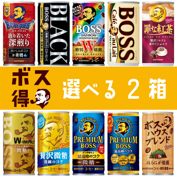 【選べる2箱】サントリー ボス コーヒー 缶 185g ×30本×2箱 ブラック レインボーマウンテン カフェオレ 贅沢微糖 プレミアムボス ダブルインパクト クエスト ドラクエ 罪な紅茶 紅茶 ハウスブレンド BOSS bb