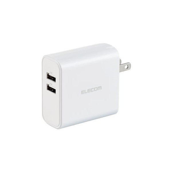 ELECOM EC-AC03WH [スマホ充電器 USB充電器 USBポート×2 コンパクト 2台同時充電 スマホ タブレット ホワイト]