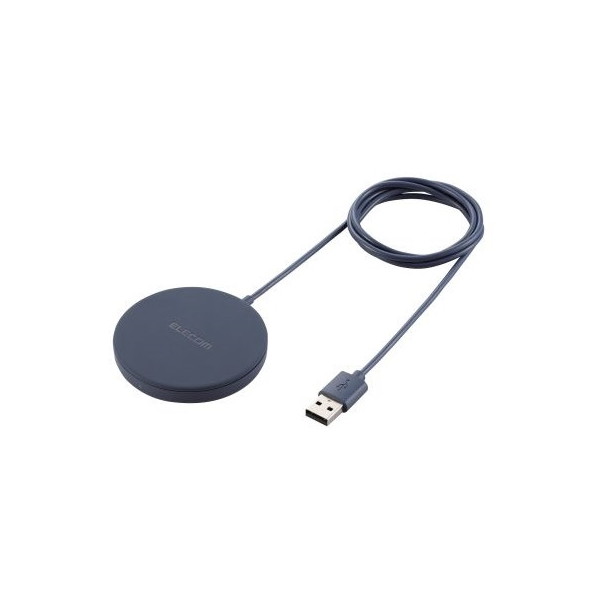 W-MA01NV ワイヤレス充電器 5W マグネット内蔵 卓上 ケーブル一体型 iPhone Airpods 1m ネイビー ELECOM メーカー直送