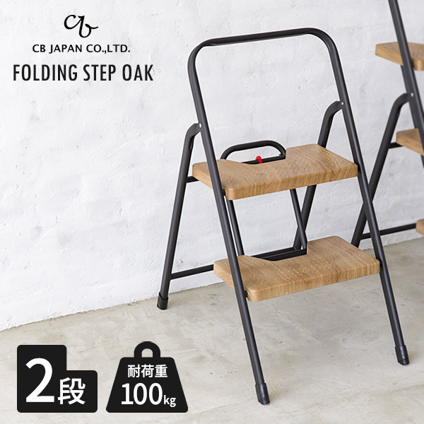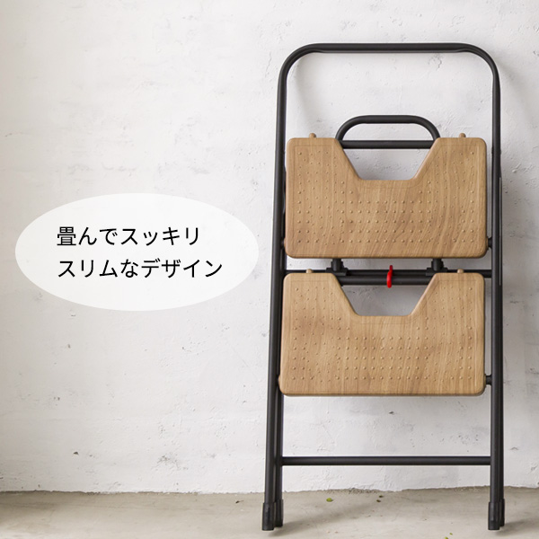 踏み台 フォールディングステップ 2段 オーク | 折りたたみ 脚立 スリム 折り畳み モダン 足台 コンパクト スツール ナチュラル 木目