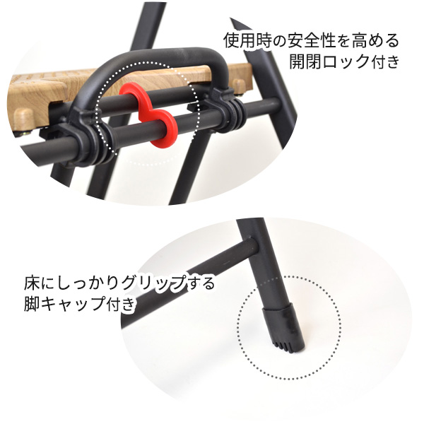 荷物を持って乗っても大丈夫!開閉ロック付きで、使用時にステップが閉じるのを防ぎます。