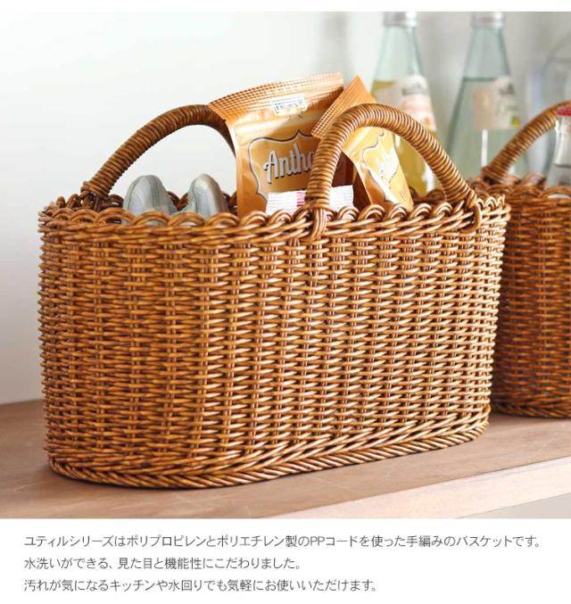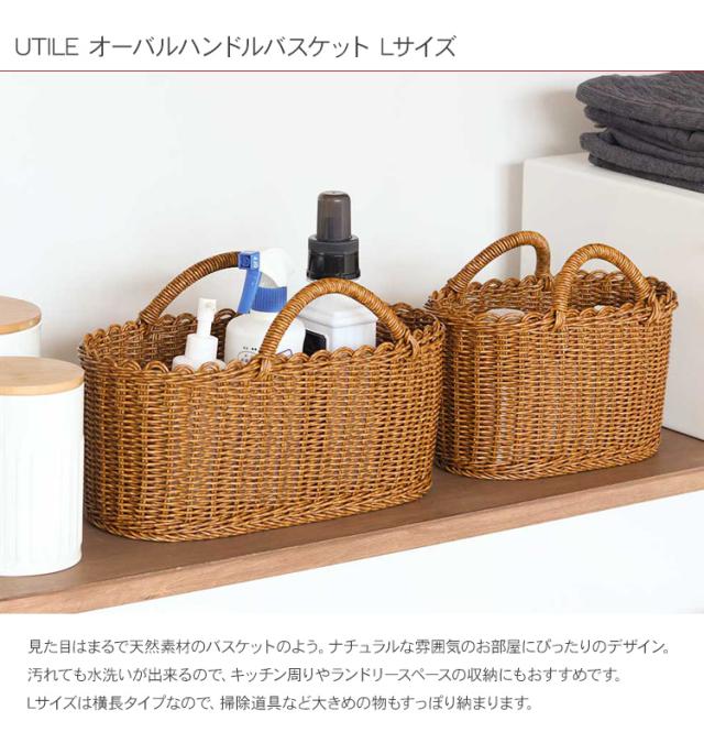 UTILE ユティル オーバルハンドルバスケット Lサイズ 92240010 収納バスケット 収納カゴ 水拭き ランドリー収納 キッチン収納 買い物かご エコバック 北欧 おしゃれ