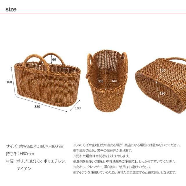 サイズ:約W380×D180×H160mm(持ち手H60mm)