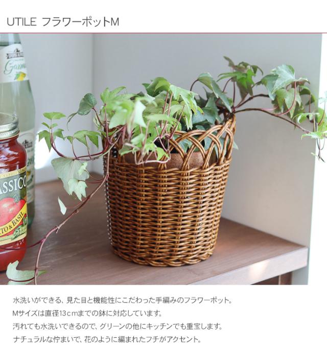 UTILE ユティル フラワーポットM(直径13cmまでの鉢対応) 92240018 収納カゴ ポット 花器 水拭き おしゃれ ナチュラル