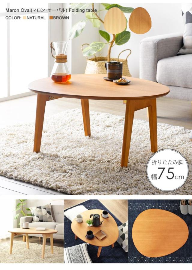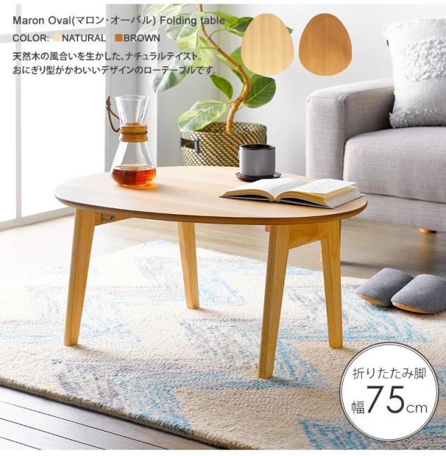 ローテーブル 折りたたみ 木製 軽い 丸形 楕円 一人暮らし 幅75 小さめ 棚 リビング 勉強机 完成品 おしゃれ センターテーブル コンパクト 学習机 低め