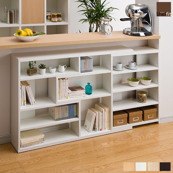 ラック 棚 3段 スリム 伸縮 棚板 薄型 木製 日本製 リビング カウンター下 ロータイプ 収納 ディスプレイ 本棚 国産 木目調 横長 ワイド 低め おしゃれ
