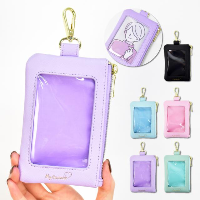 メール便送料無料 パスケース 定期入れ カードケース 定期 入れ 合皮 フック 小銭入れ コインケース ICカード キーケース フラグメントケース クリア グッズ トレカ ミニフォト 推し活 ヲタ活 レディース 女子 女の子 大人 高校生 学生 かわいい