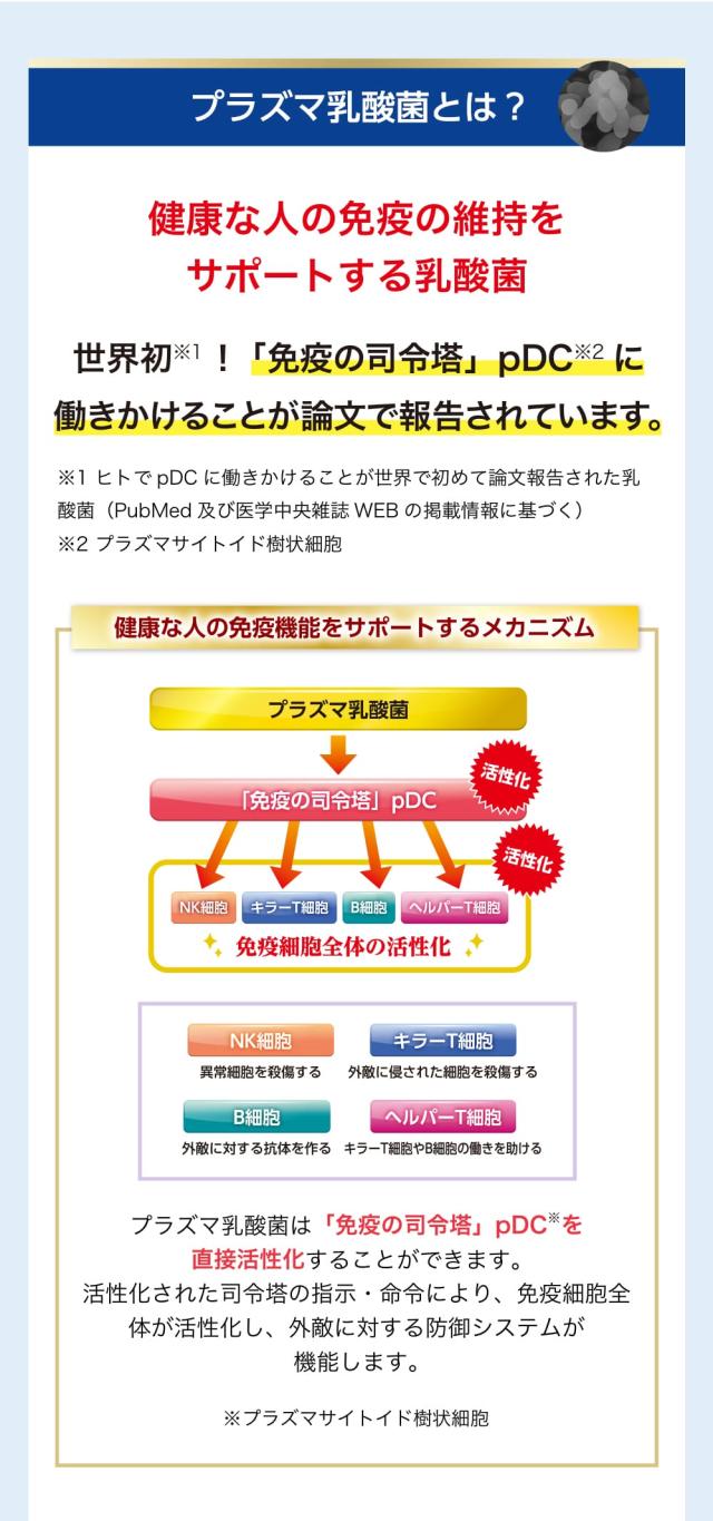| 原材料名 | [成分 4粒12.4g当たり] 〔機能性関与成分〕プラズマ乳酸菌(L. lactis strain Plasma) 1,000億個 [原材料名] 還元パラチノース(ドイツ製造)、還元水、乳酸菌殺菌乾燥粉末、ペパーミントエキス粉末、 添加物:ビタミンC、香料、乳化剤、酸味料、甘味料(アスパルテーム・L-フェニルアラニン化合物)、チャ抽出物 |