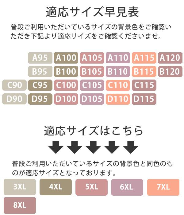 3XLサイズ:(A95/B95/C90/D90対応) 4XLサイズ:(A100/B100/C95/D95対応) 5XLサイズ:(A105/B105/C100/D100対応) 6XLサイズ:(A110/B110/C105/D105対応) 7XLサイズ:(A115/BB115/C110/D110対応) 8XLサイズ:(A120/B120/C115/D115対応) |