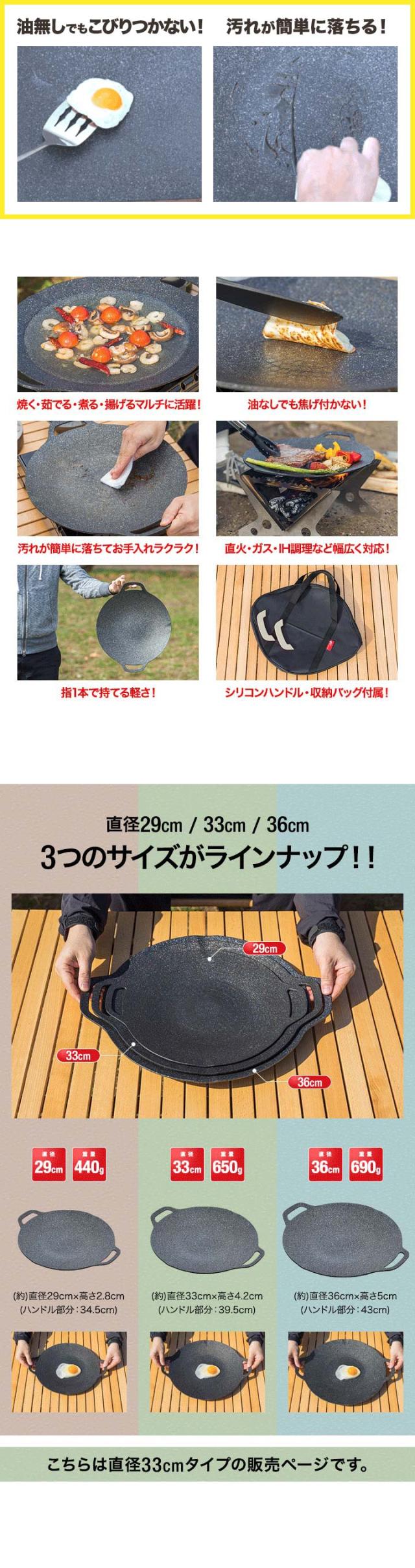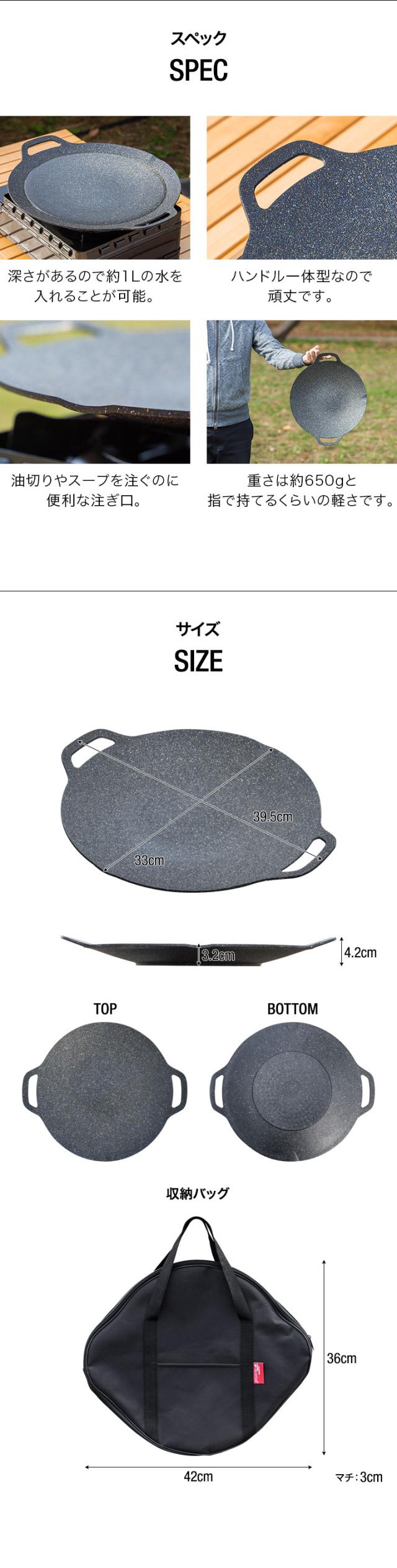 | サイズ: 本体:(約)直径33cm(39.5cm※ハンドル含む)×高さ4.2cm 収納バッグ:(約)幅42cm×マチ3cm×高さ36cm |