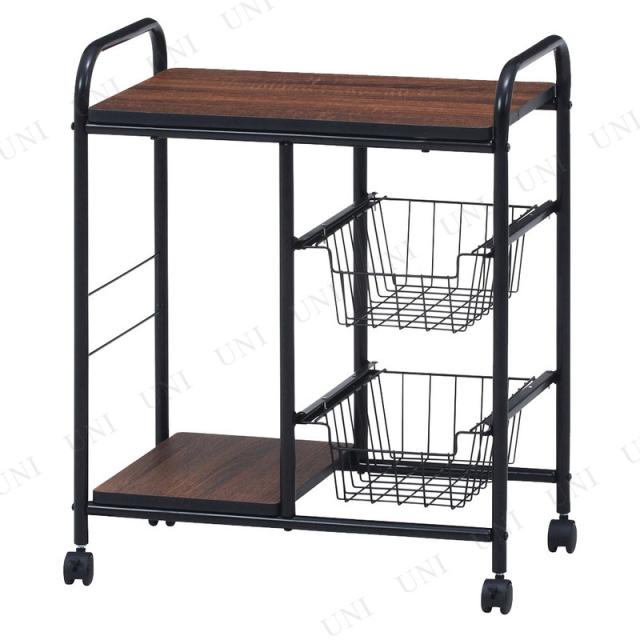 | 商品説明 | ・木目調天板とスチールの組み合わせがオシャレなワゴン ・レンジや炊飯器の収納に便利 ・フラットな作りなので、ちょっとした作業台として使えます ・バスケット2杯付きで、小物や食品ストックもまとめて収納できます ・下棚には背の高いボトルなどの収納できます ・キャスター付きで、掃除の際も手軽に移動できます ・限られたキッチンにも置きやすいスリムなデザイン ・安全ストッパー付き |