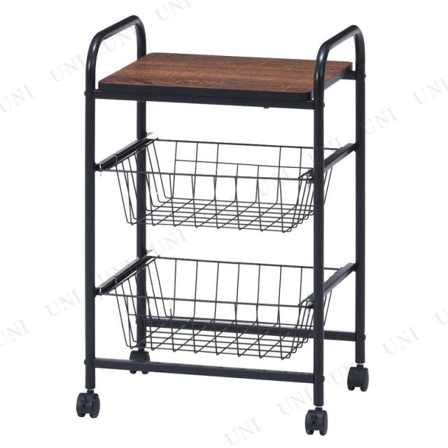 キッチンワゴン ブラック/ブラウン FBC-01-1 不二貿易 キッチンラック キャスター付き バスケット2杯付き 安全ストッパー付き