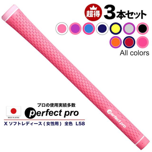 3本 セット パーフェクトプロ レディース用 ミルキーピンク Xソフトレディ エックスソフト ゴルフグリップ セット ゴルフ ラバー レディース グリップ ぱーふぇくとぷろ 女性用 オレンジ レッド ピンク ラベンダー ブルー イエロー グレー ブラック