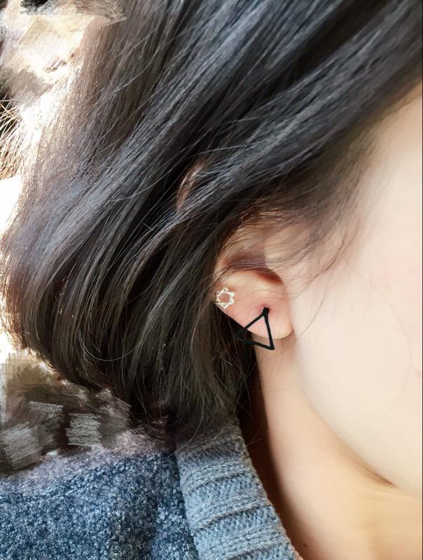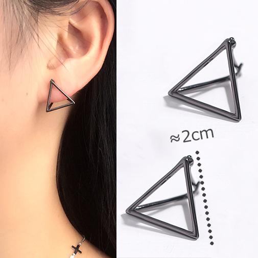 フーブピアス レディース 金属アレルギー対応 ブラック 三角 トライアングル 透かし 立体 キャッチレス 個性 両耳用 仕事 プレゼント
