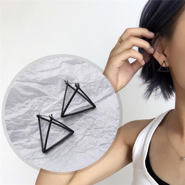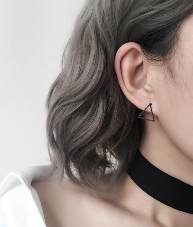立体的なトライアングルフレームでさり気ない個性が出るユニークなピアス
