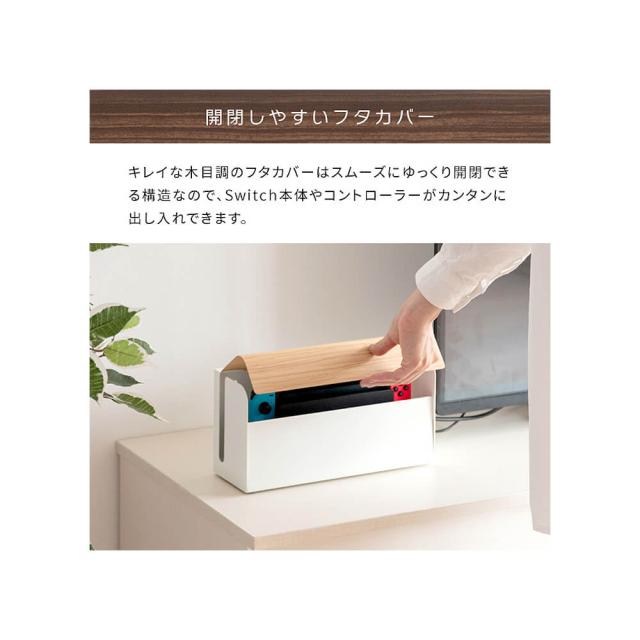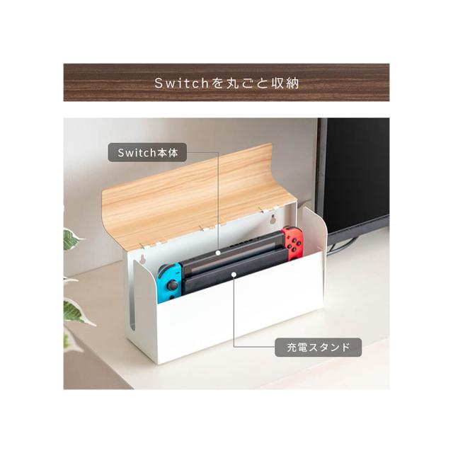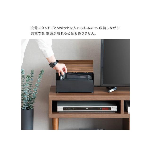 どうしてもインテリアから浮いてしまうSwitchを充電スタンドごと入れられるので、ホコリや汚れを防ぎながら、お部屋の雰囲気を損ねることなくすっきり片づけることが出来ます。