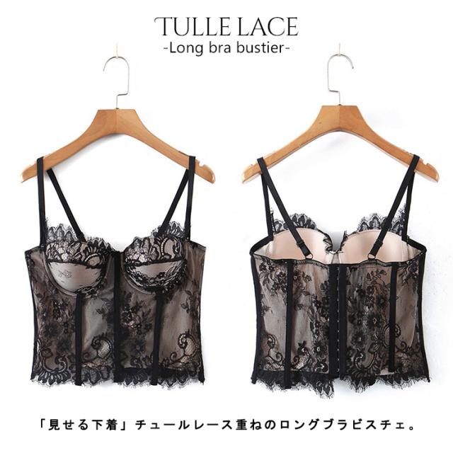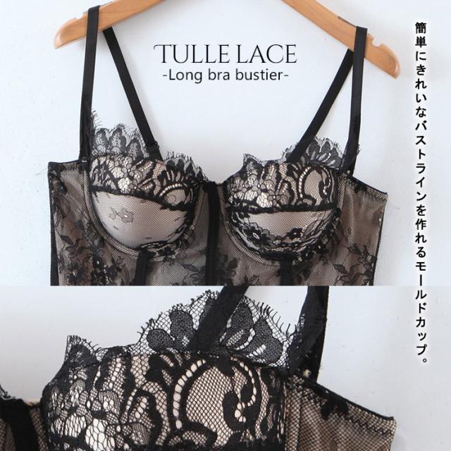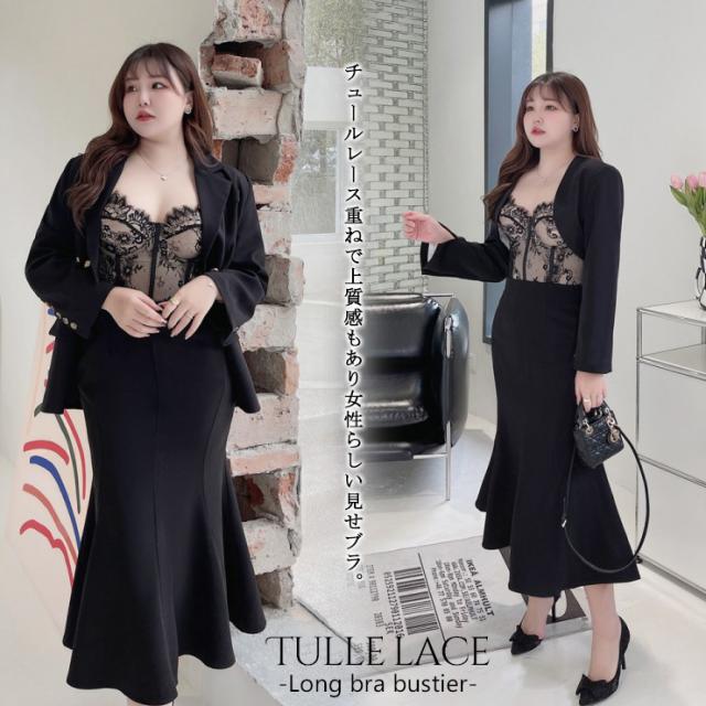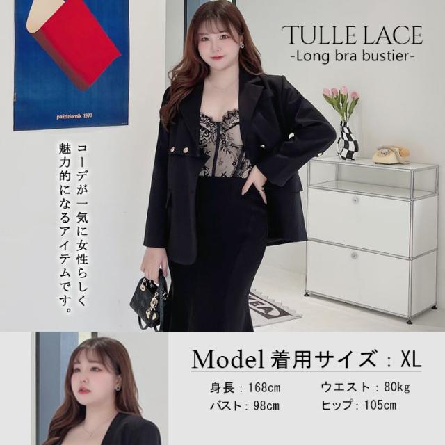 大きいサイズの下着 エレガントなチュールレースのロングビスチェ