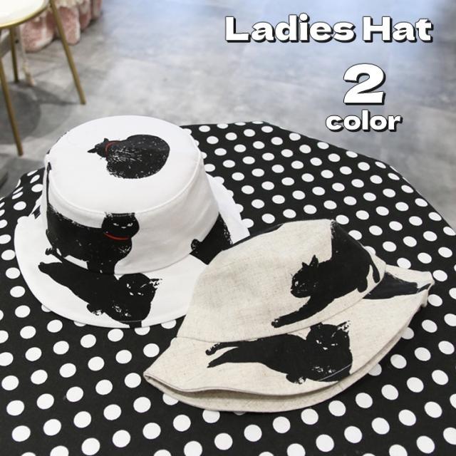 黒猫柄がキュートなレディース用バケットハットです。
