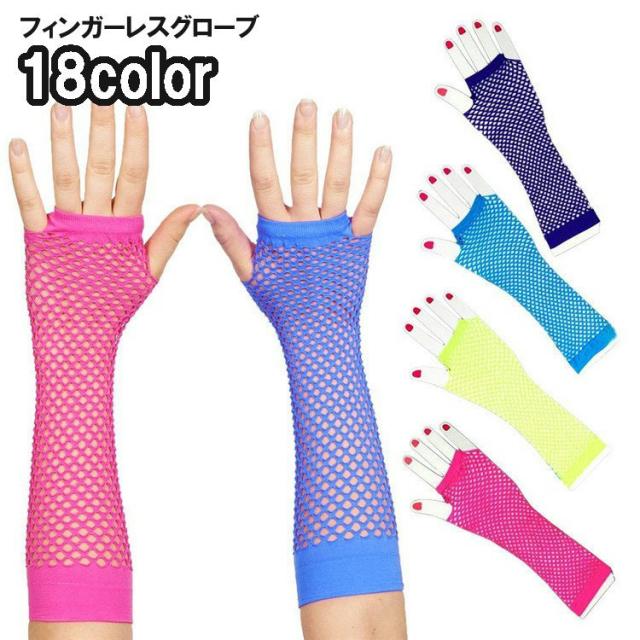 フィンガーレスグローブ 2個セット レディース 女性用 キッズ ネオン 手袋 ロング ネット メッシュ ダンス 衣装 ステージ