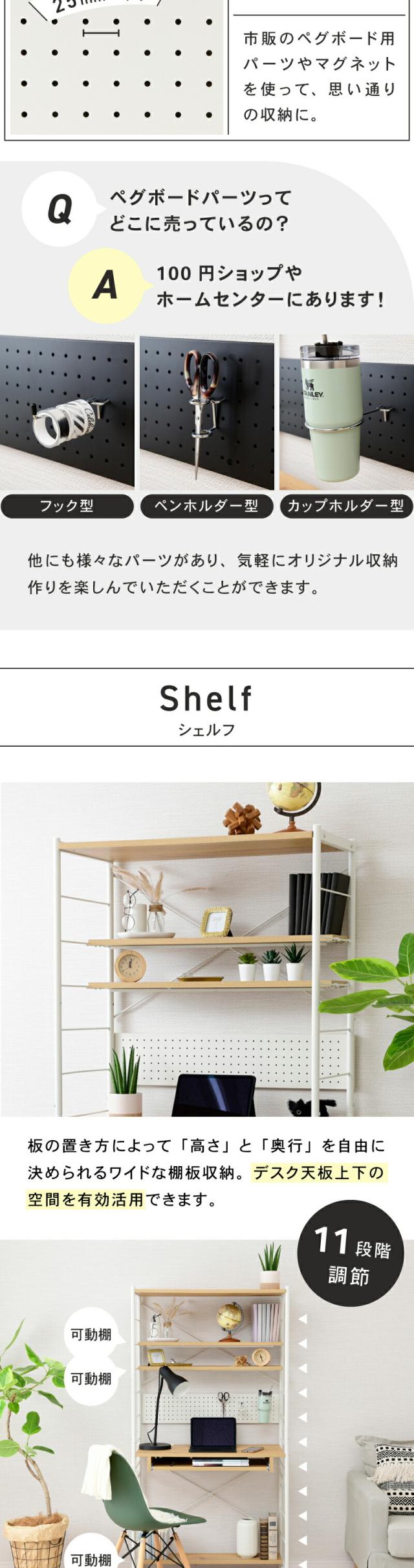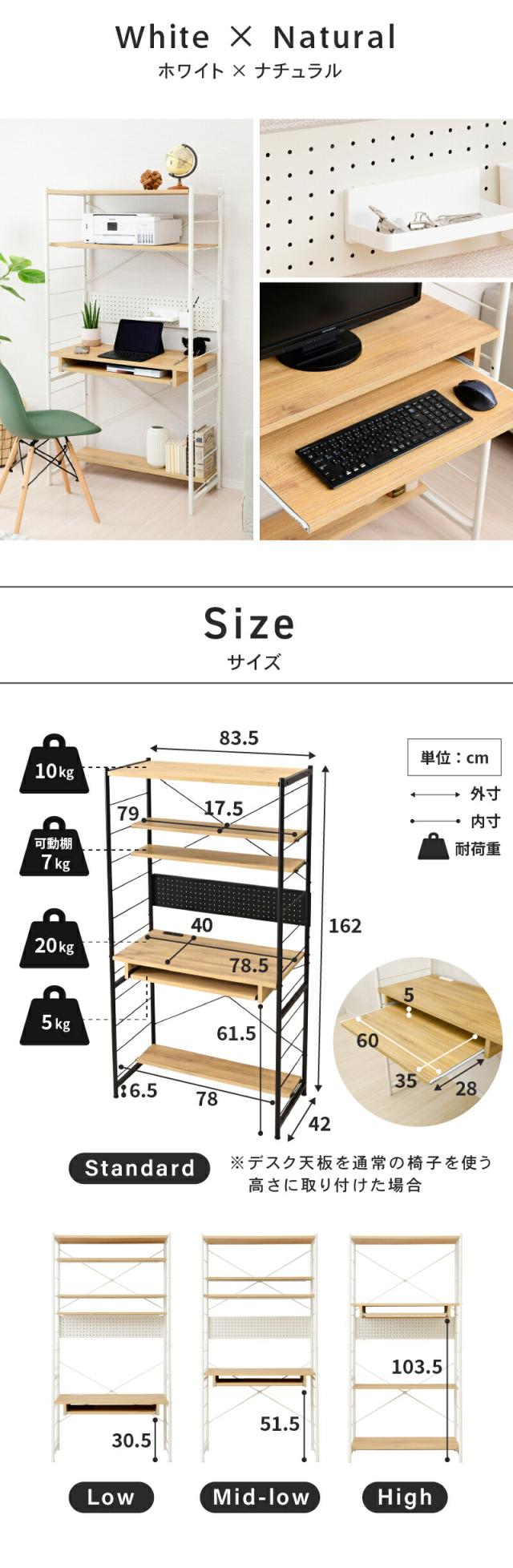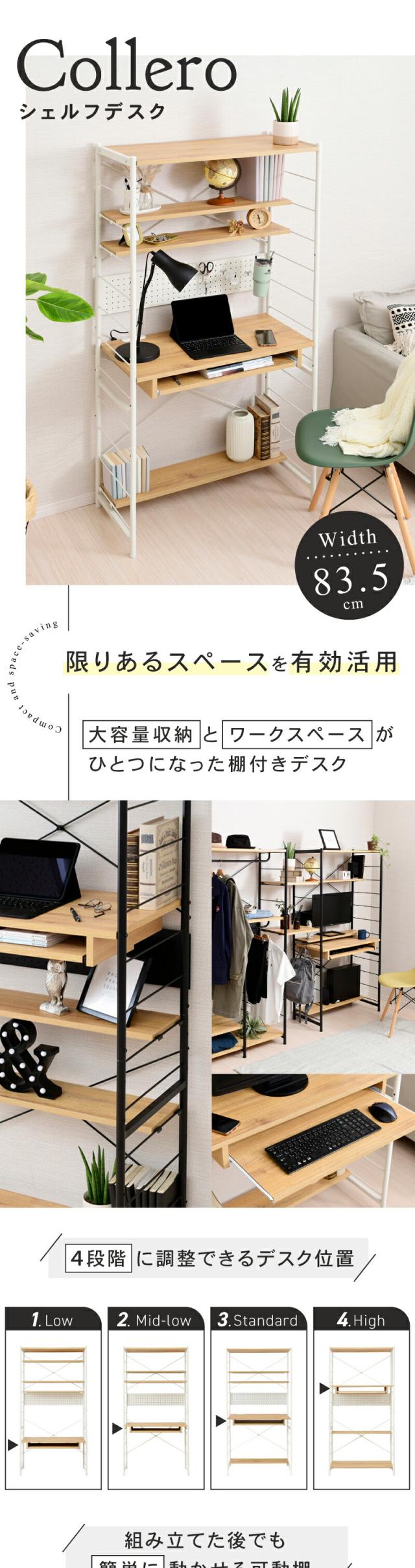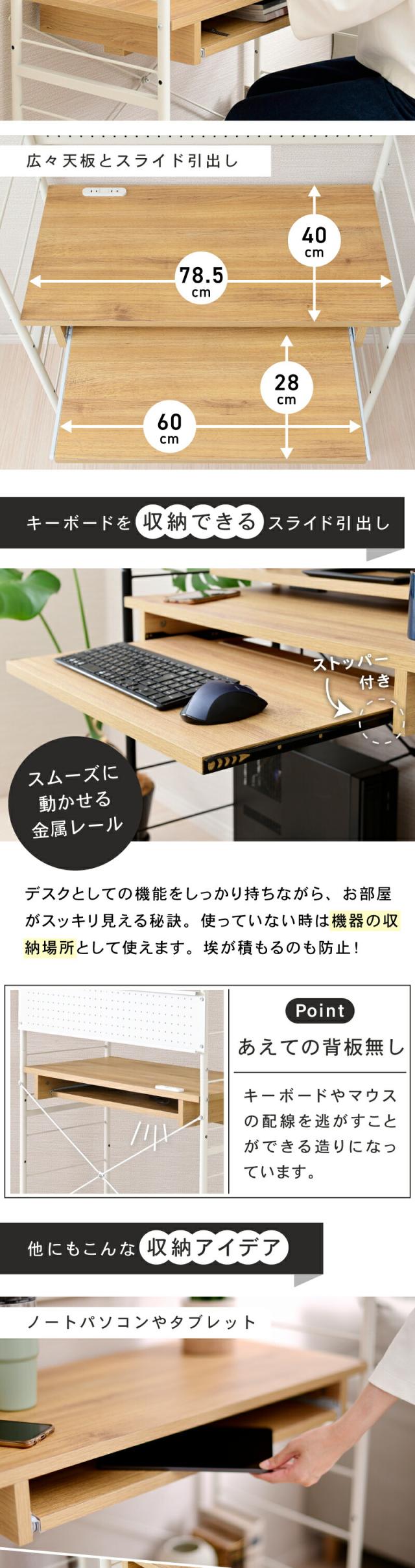 デスク ラック付き 収納 棚付き コンセント付き 高さ調整 幅80センチ 机 つくえ コンパクト シンプル 省スペース パンチングボード 北欧 おしゃれ シェルフ 木製 アイアン ユニットシェルフ 棚付きデスク 白