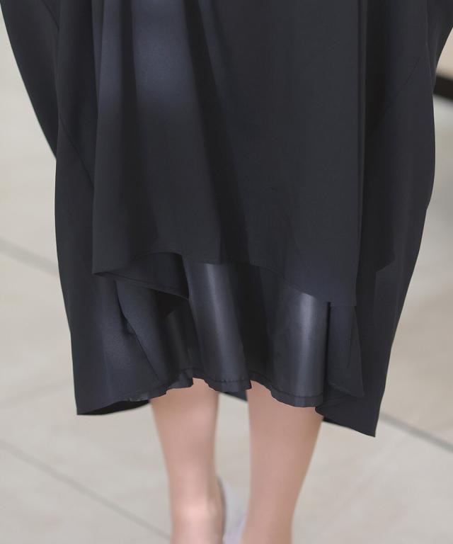 ふわっとしたシルエットが肉感を拾わず、ウエストゴムで着心地もラクチン。<br>