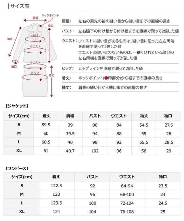 ■素材:ジャケット表地...ポリエステル100% 裏地...ポリエステル100% ワンピース表地...ポリエステル100% 裏地...ポリエステル100%