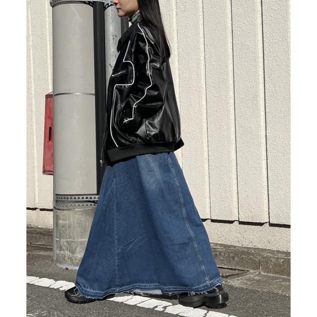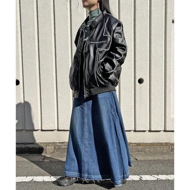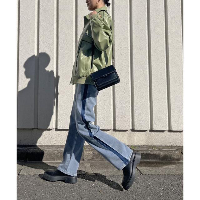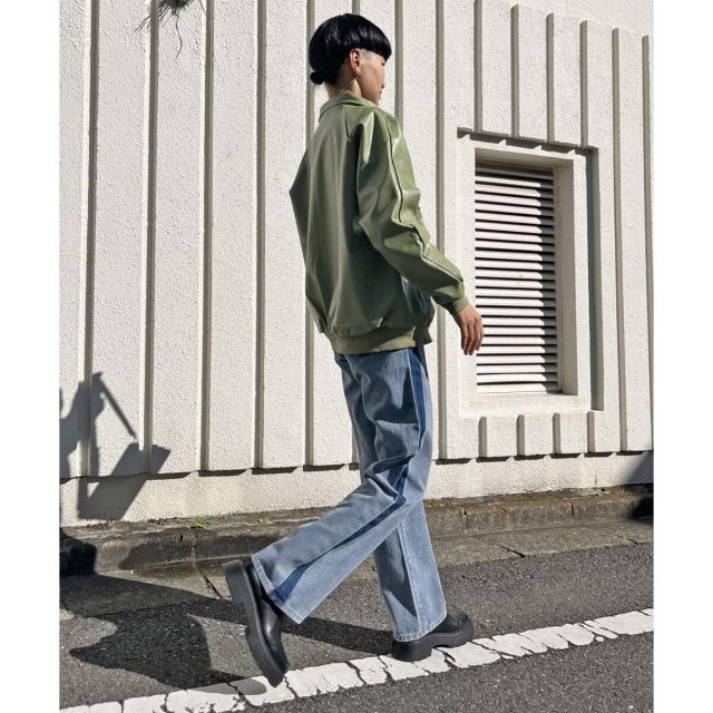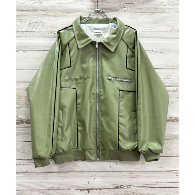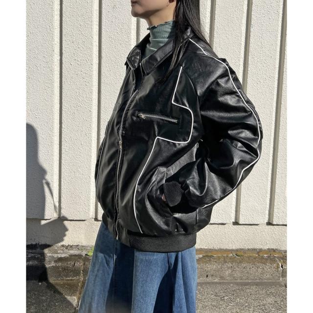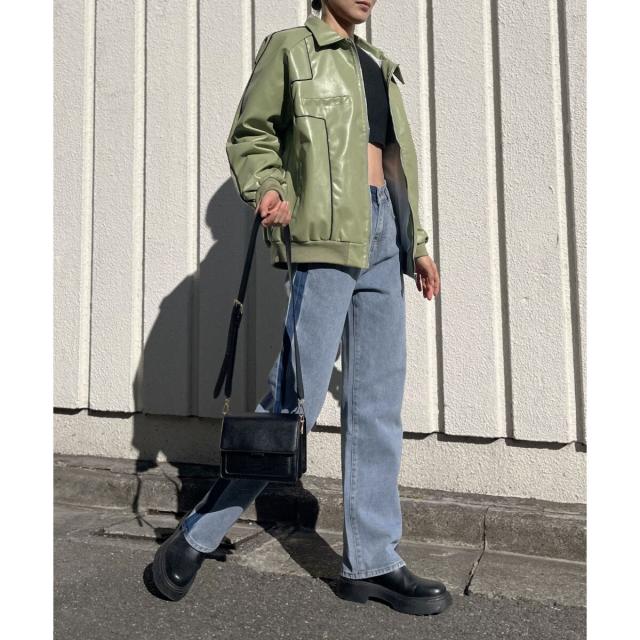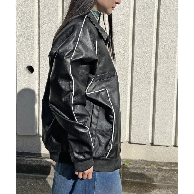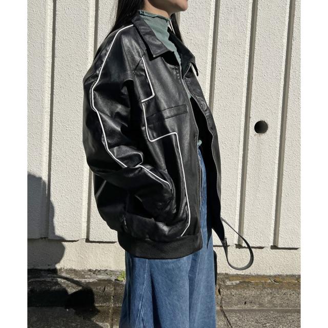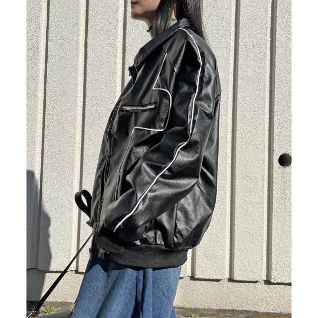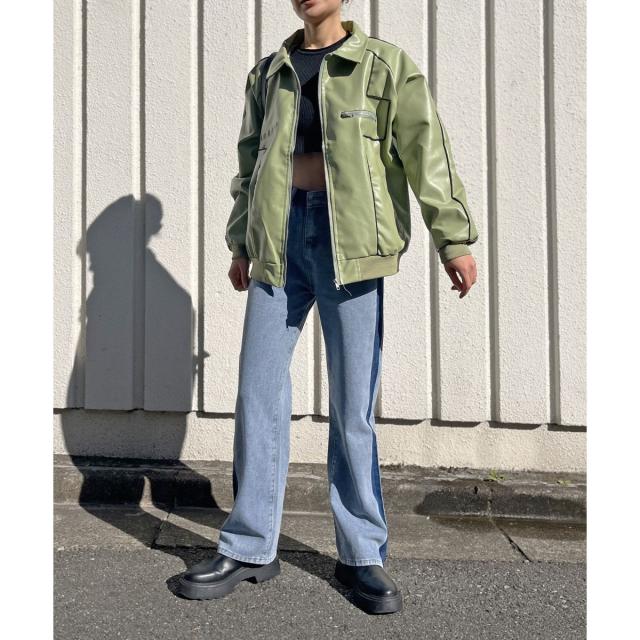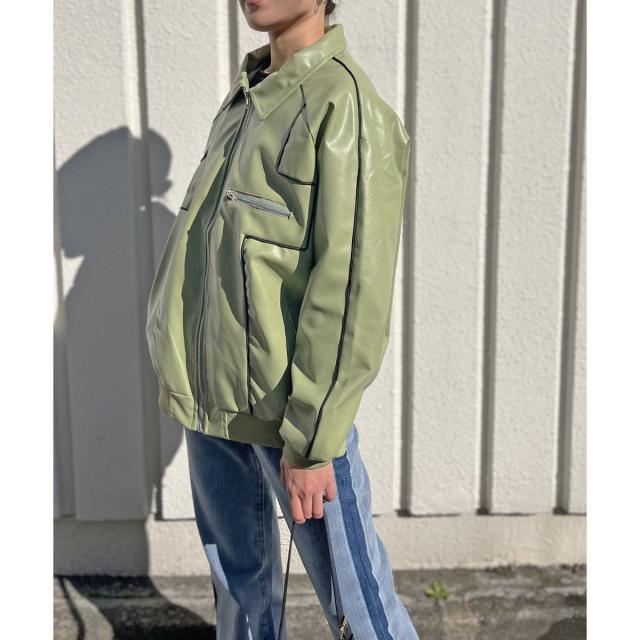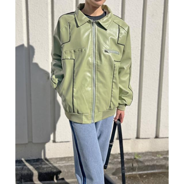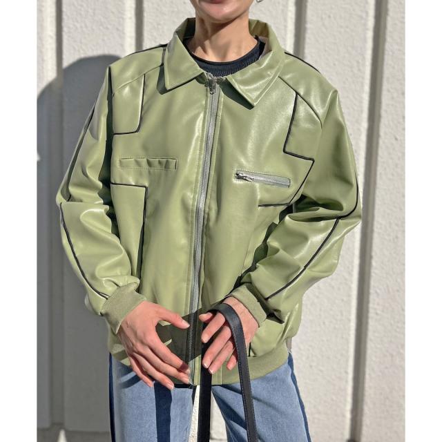 配色パイピングフェイクレザーブルゾン
