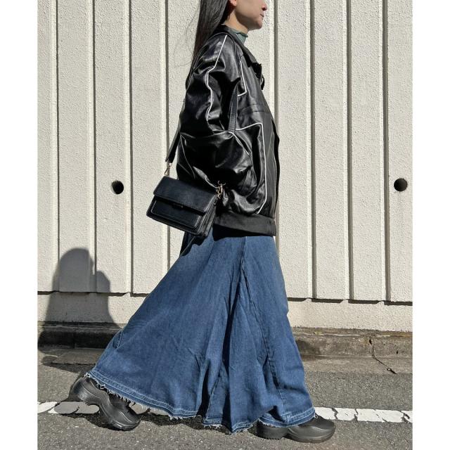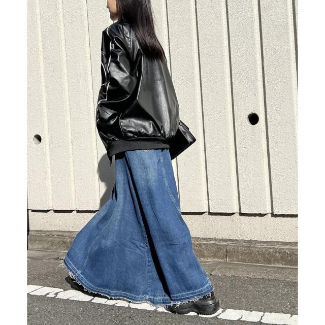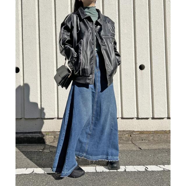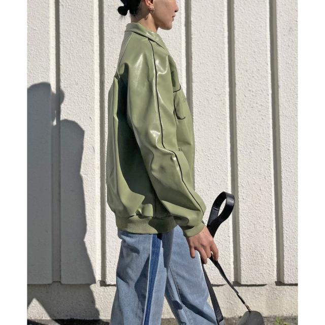 フェイクレザーで仕立てたオーバーサイズブルゾン。