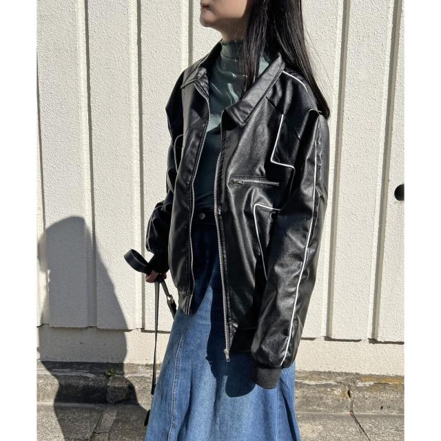 ジュエローブ/配色パイピングフェイクレザーブルゾン