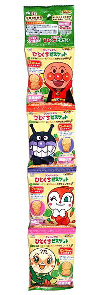 ビスケットの形が新しくなり、種類も増えて、さらに楽しさがアップしたアンパンマンひとくちビスケットの食べきり4連タイプ。
