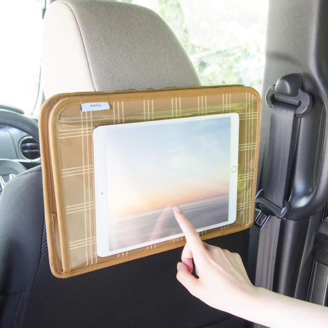 トレイの底部にはタブレットを収納できる透明ポケットが付いています。後部座席でも動画を視聴することができ、ポケットに入れたままで操作も可能です。