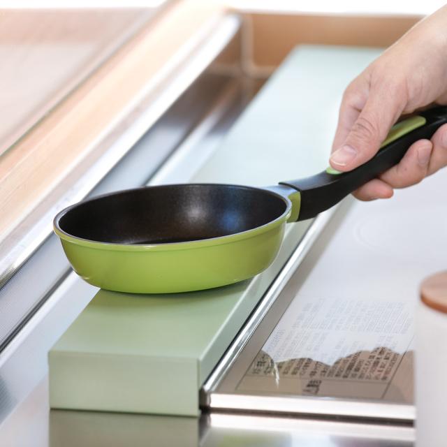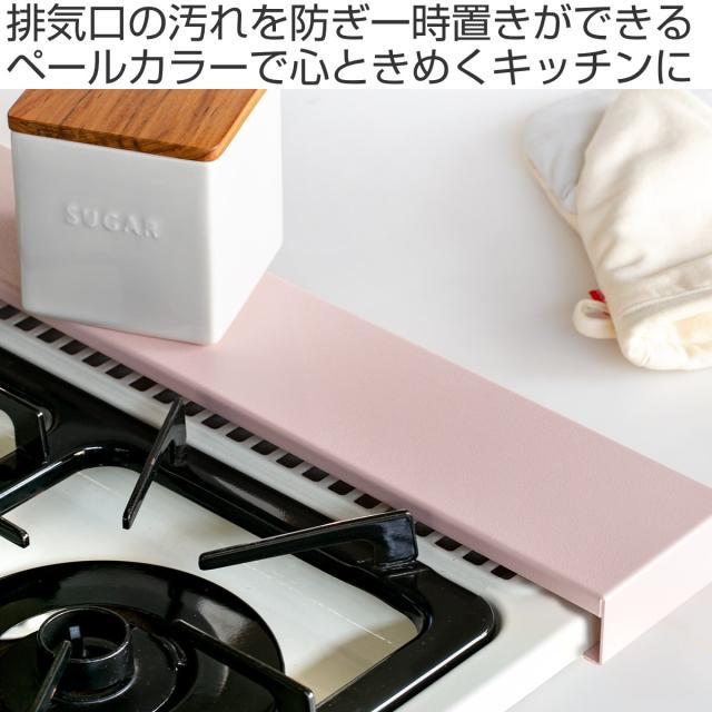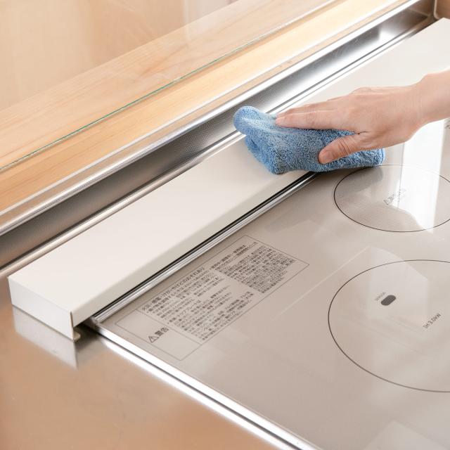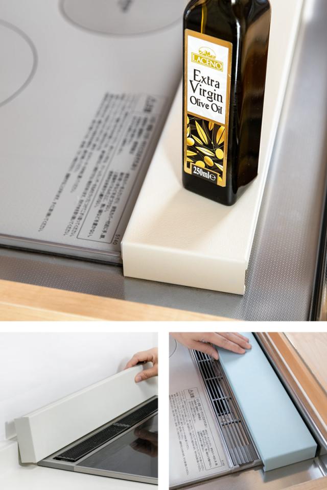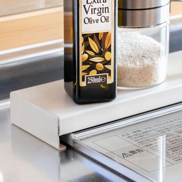 置くだけで、汚れやすく掃除がしにくいグリルの排気口部分に飛び散る油やホコリからしっかりガードします。今まで使わなかったコンロ周りのスペースを有効活用できます。IHにもガスコンロにも対応しています。(※ビルトインコンロ専用)
