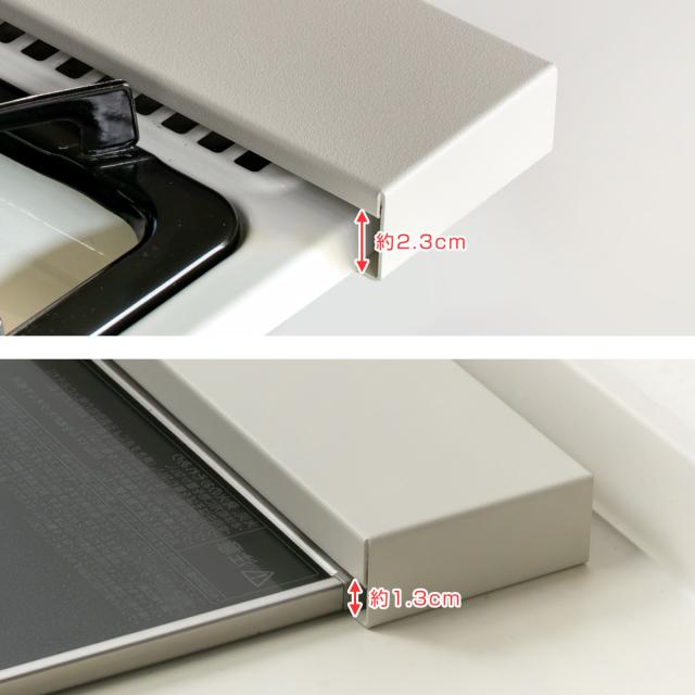 前後をひっくり返せば隙間の高さが違うので、コンロに合わせて隙間の高さを選べます。コンロの種類や排気口カバーの高さなどに合わせてお使いいただけます。