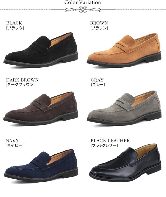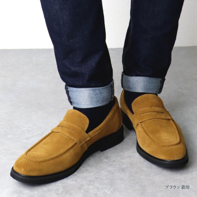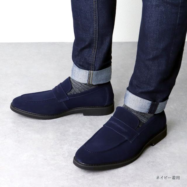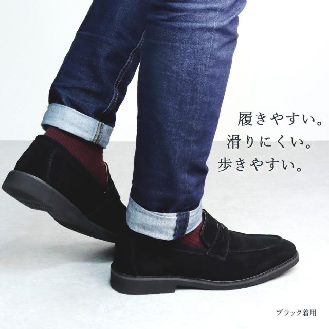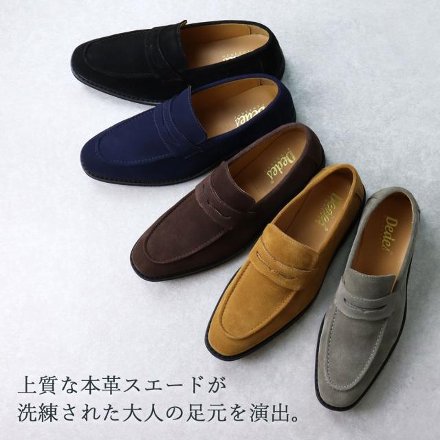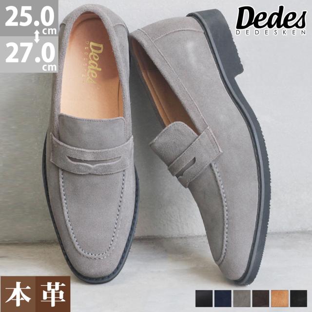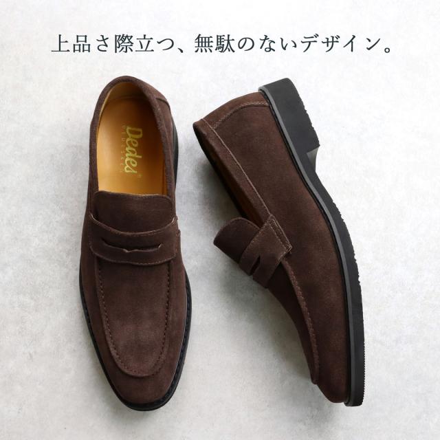 ローファー メンズ スエード 本革 オンオフ兼用シューズ 2.5cmヒール No.5264 25.0-27.0cm 黒 ブラック ゆったり 3E オフィス 通勤 上品 履きやすい コインローファー メイドインジャパン 歩きやすい 高級感 天然皮革 シンプル Dedes デデス