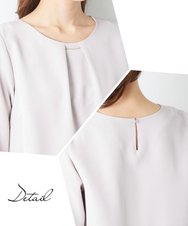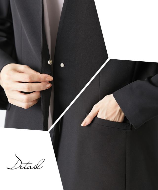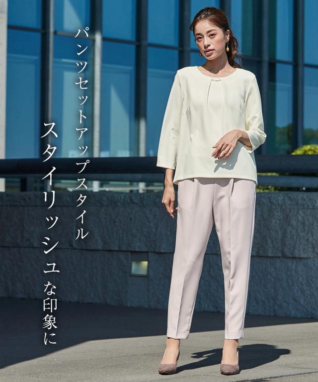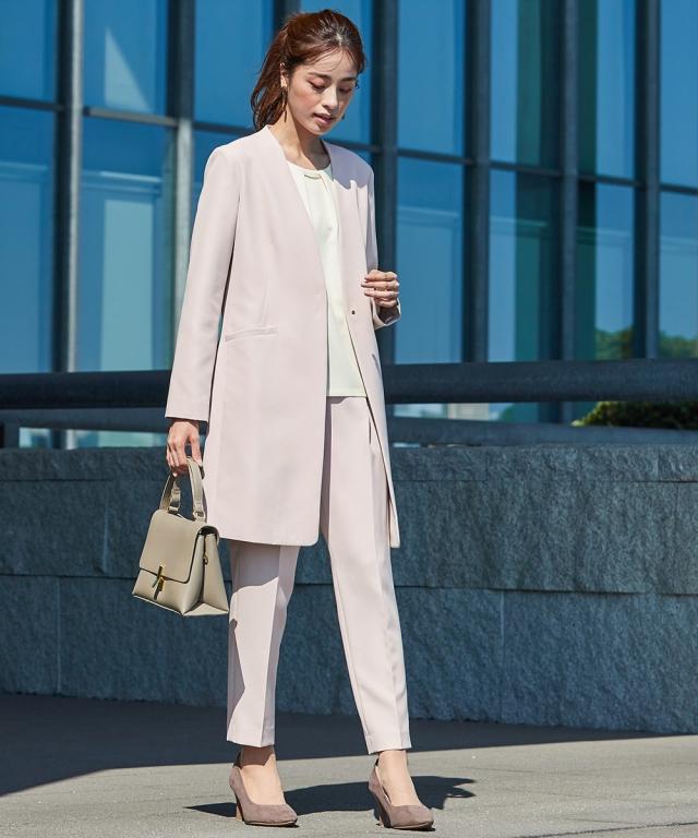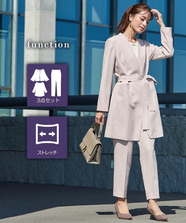 縛られたカタチではなく、「想い」が人と人をつなぐシーンにもテイストにも年齢にも縛られない自由な着こなしを実現する新しいセレモニーフォーマル。 こだわりポイントエレガンスな装いでクールなママを表現それぞれ着回しできる使いやすい3点セットスーツ抜け感のあるロング丈ノーカラージャケット立体感を演出してくれるタックボウタイ風デザインブラウススタイリッシュなシルエットのテーパードパンツ共布ベルトでウエストマークスタイルが完成セレモニーシーンだけでなく、通勤・結婚式・参観日・七五三・普段使いなど幅広いシーンに対応でき