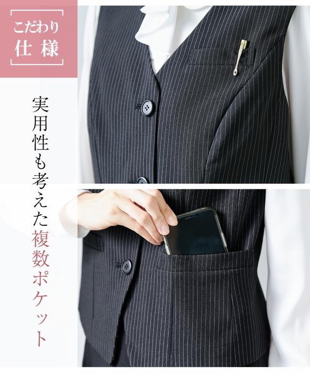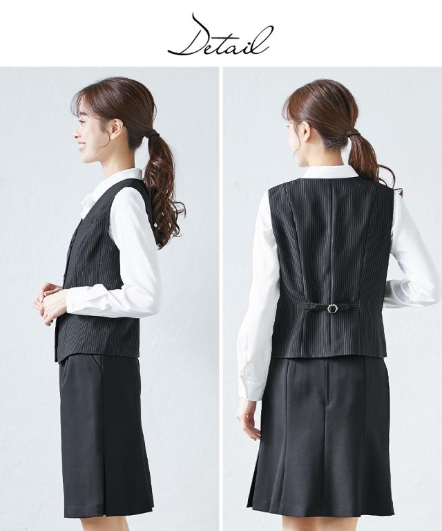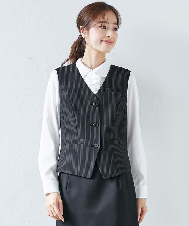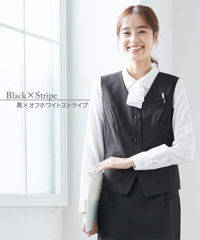 事務服 ベスト 大きいサイズ レディース 会社制服 洗える 防汚加工 消臭テープ付 4L/5L/6L 上下別売り スーツ 黒×オフホワイトストライプ/黒無地 ニッセン nissen