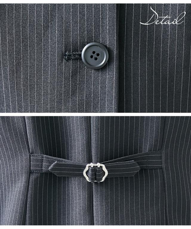 品質=無地色:ポリエステル100%(織物) ストライプ色:ポリエステル95%・レーヨン5%(織物) [裏地]有(総裏) 前ボタン開 ポケット両脇・左胸 後バックル ※柄の出方が多少異なる場合があります。 ※お洗濯の方法は商品に添付の取扱絵表示や下げ札をご確認ください。 原産国:中国製またはバングラデシュ製 洗濯表示:洗濯機OK ネット使用