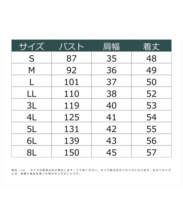 | ・ S/M/L はこちら ・ LL/3L はこちら ・ 8L はこちら |