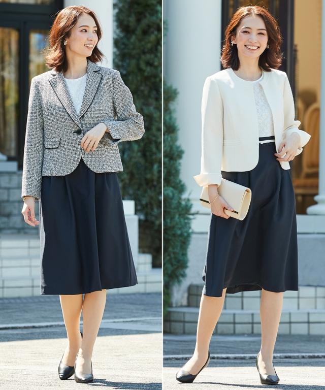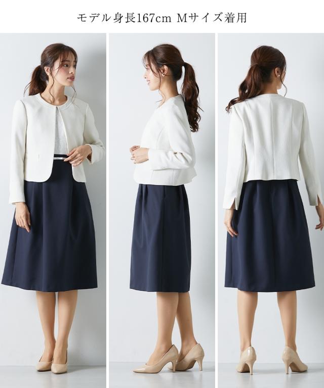 スーツ フォーマル ワンピース アンサンブル 3点セット 入学式 卒業式 テーラードジャケット + ノーカラージャケット S/M/L 白黒MIX系+アイボリー系+ネイビー系 セレモニー レディース ニッセン nissen