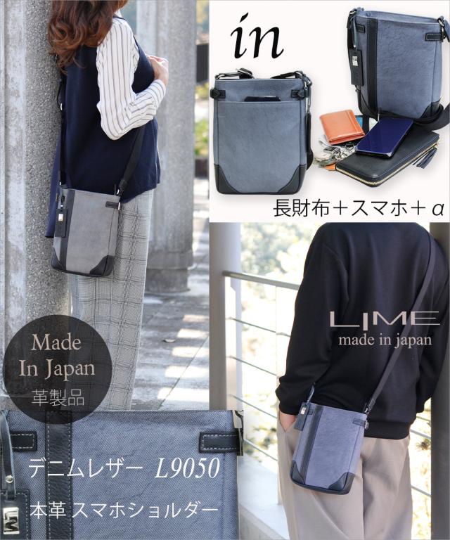 ショルダーバッグ メンズ 本革 スマホショルダー スマホポーチ ポシェット ミニバッグ スマホポシェット 日本製 デニム バッグ スマホ 斜めがけ 小さめ お財布ポシェット ショルダー 大人 革 レザー 旅行 軽い 軽量 ギフト ライム L9050 デニムレザー 女性 男性 クリスマス