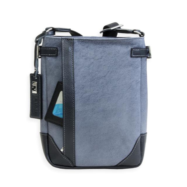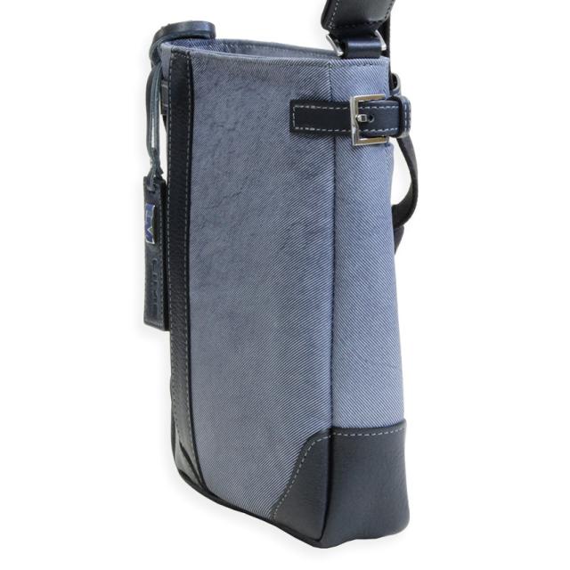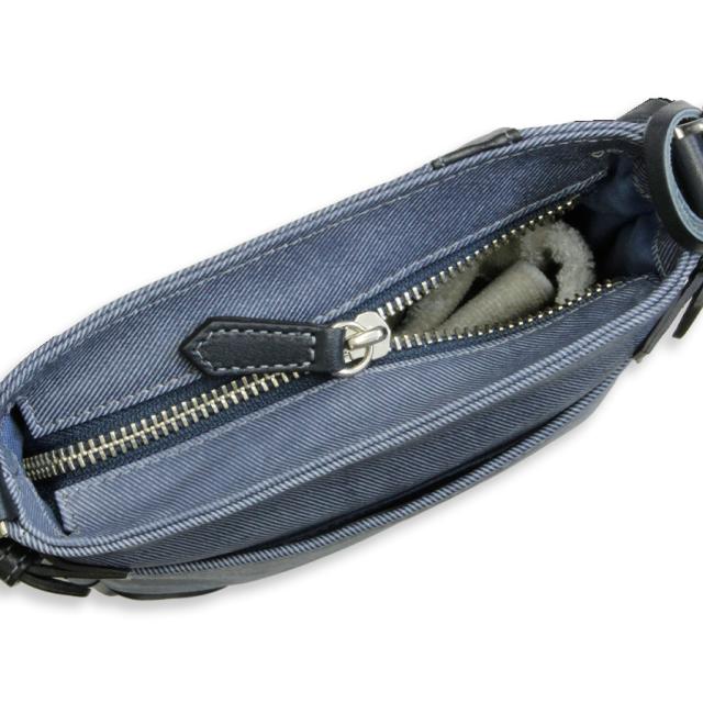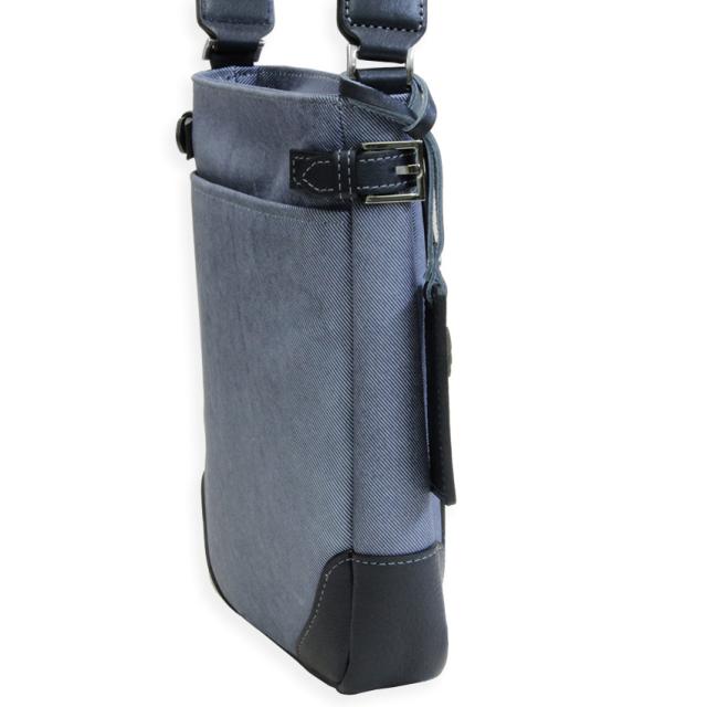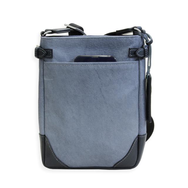 デニム素材に見えてすべて本革。 デニム独特の風合いや色ムラ、ヴィンテージ感を本革で表現したデニムレザーシリーズから、ユニセックスラインの縦型ポシェットです。