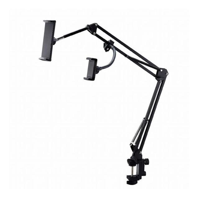 タブレット スマホスタンド ホルダー 2台設置可 フレキシブルアーム 角度高さ調整可4.6~12.9インチ iPhone iPad Galaxy Android 各種対応ブラック TB-DSZARM2BK(代引不可)【送料無料】