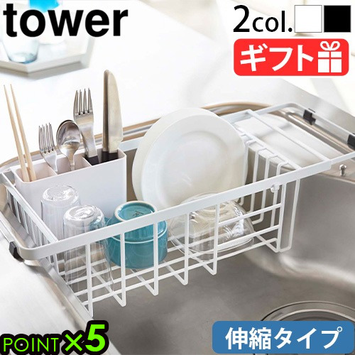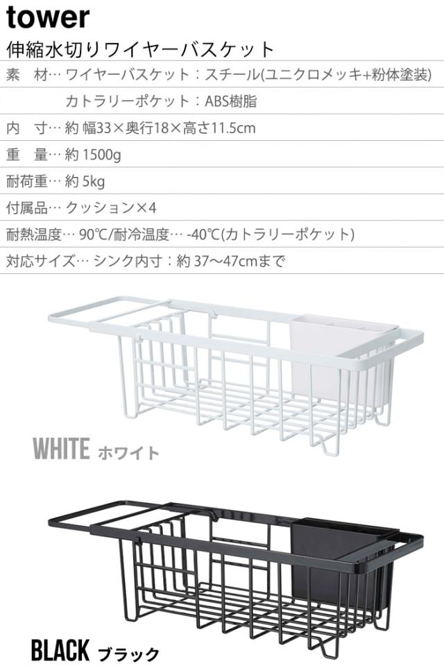 タワー 山崎実業 tower 伸縮水切りワイヤーバスケット 3492 3493 シンク 水切りラック スリム 水切り ラック 水切りトレー YAMAZAKI シリコン 折りたたみ 食器 台所用品 流し台 乾燥 省スペース 伸縮式 伸縮 シンク中【12時迄のご注文は当日発送★P5倍★送料無料】
