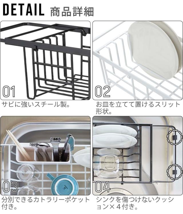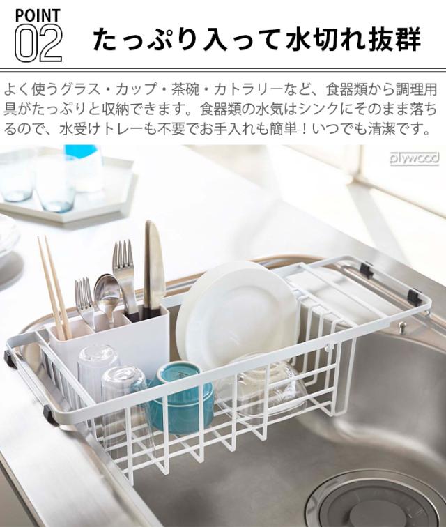 食器洗いに欠かせない水切りトレー。タワーの伸縮水切りワイヤーバスケットなら、シンクの中に設置し、洗う・乾かすの全てをシンクの中でできるので、作業スペースを広く使えます。伸縮式だからご自宅のシンクにぴったり設置が可能。食器の水気をそのままシンクに落としてくれるのでお手入れもラクラクです♪