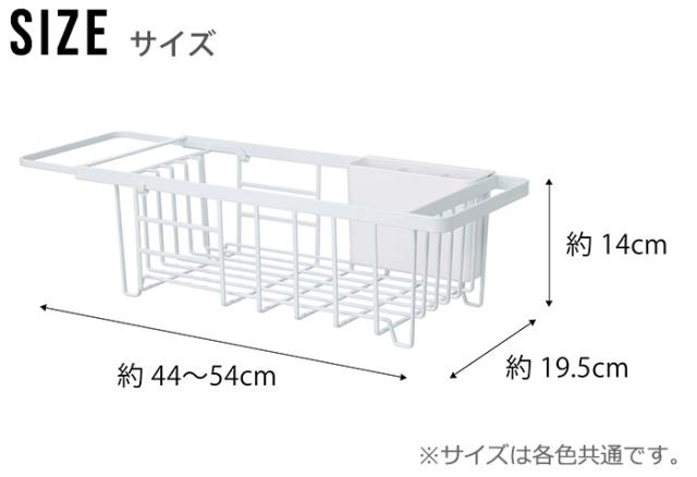 | (約)幅44~54×奥行19.5×高さ14cm カトラリーポケット:(約)幅15×奥行5.5×高さ11cm バスケット(内寸):(約)幅33×奥行18×高さ11.5cm |