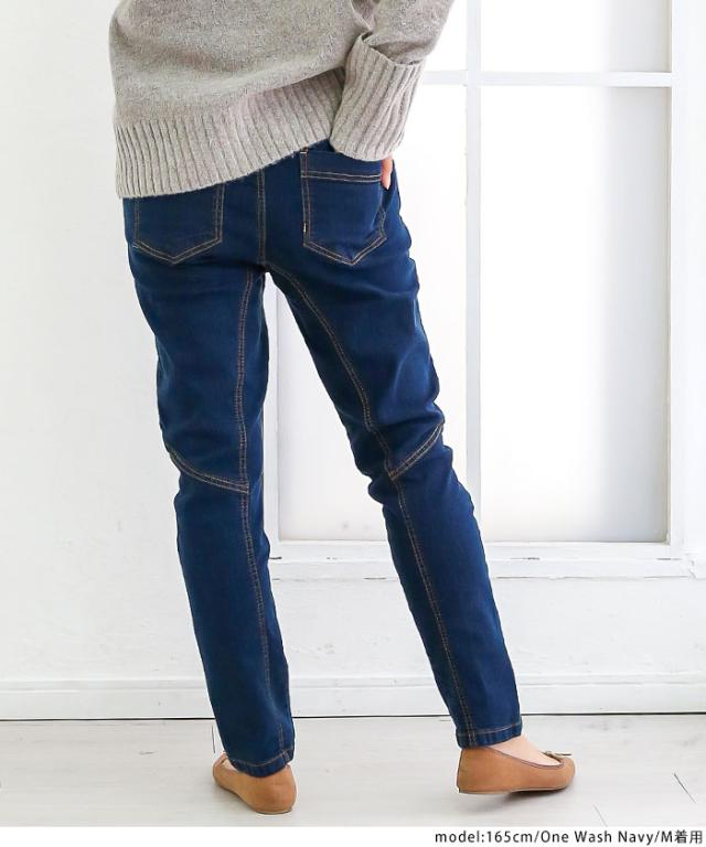 | ストレッチデニム:コットン80%、ポリエステル19%、ポリウレタン1% │ リブ:コットン85%、レーヨン10%、ポリウレタン5% 伸縮性:ストレッチあり |