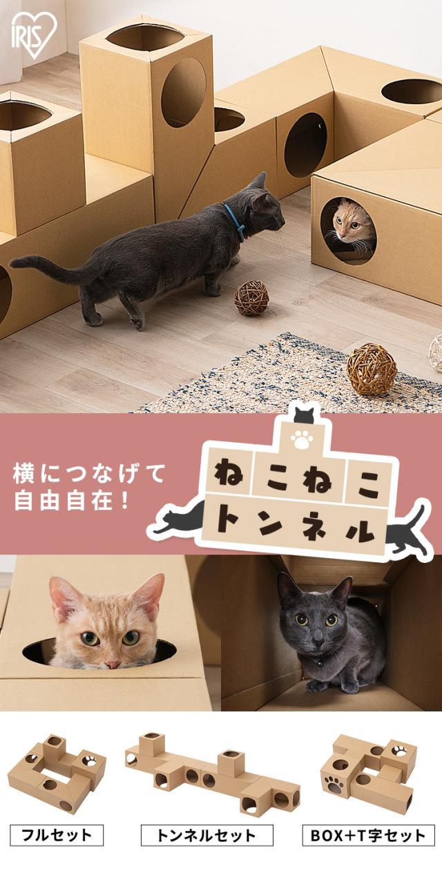 ねこねこトンネル P-NT 全3種 キャットトンネル 猫 ねこ ネコ トンネル 猫用 ペット用 キャットハウス ダンボール 段ボール 遊び場 おもちゃ 要組立 アイリスオーヤマ