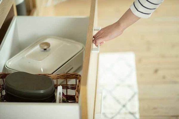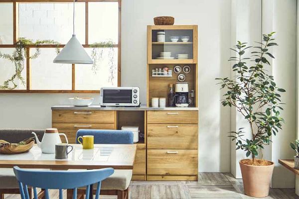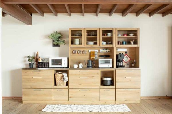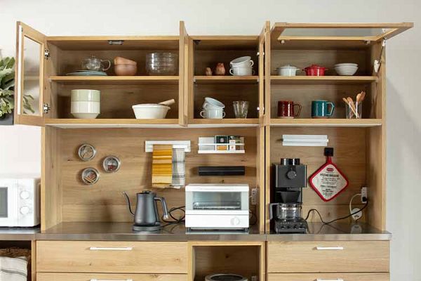「見せる」収納にもこだわった、ナチュラルなキッチン収納です。